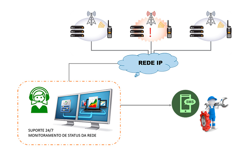 A aplicação de Alarme SMS pode ser utilizada tanto em sistemas convencionais como troncalizados . No momento em que o monitor da repetidora Kenwood detectar um incidente, será emitido um alerta com envio de mensagem de texto para um endereço de e-mail pré-configurado. O conteúdo dessa mensagem de texto será distribuído para um ou mais telefones móveis cadastrados com emissão de um Alarme SMS do evento. A aplicação de software do monitor da repetidora alerta os supervisores e equipe técnica de problemas sistêmicos ou falhas em qualquer site Kenwood.
